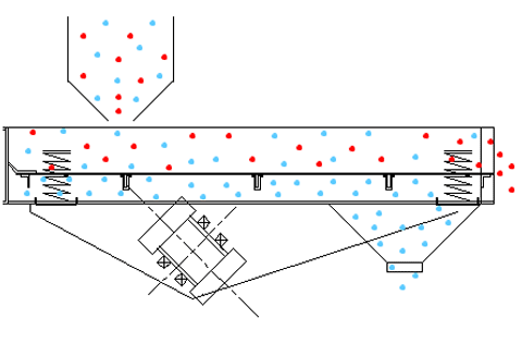 直線振動篩采用雙振動電機驅(qū)動,其兩電機軸相對篩面有一傾角,在激振力和物料自重力的合力作用下,物料在篩面上被拋起跳躍式向前作直線運動,從而達到對物料進行篩選和分級的目的。